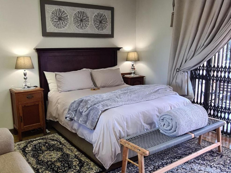 The space offers an Inverter System, gas hob in the kitchen, Netflix, uncapped Wi-Fi, secure parking space, includes a braai area (BBQ) equipped with bar fridge microwave and ice machine.