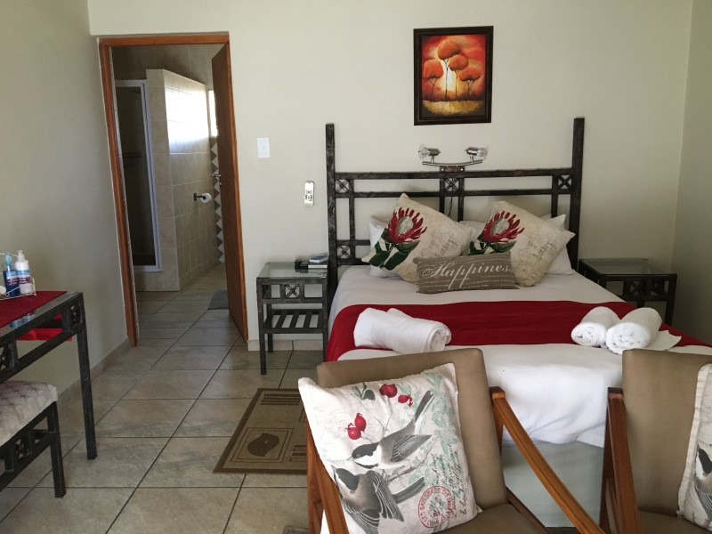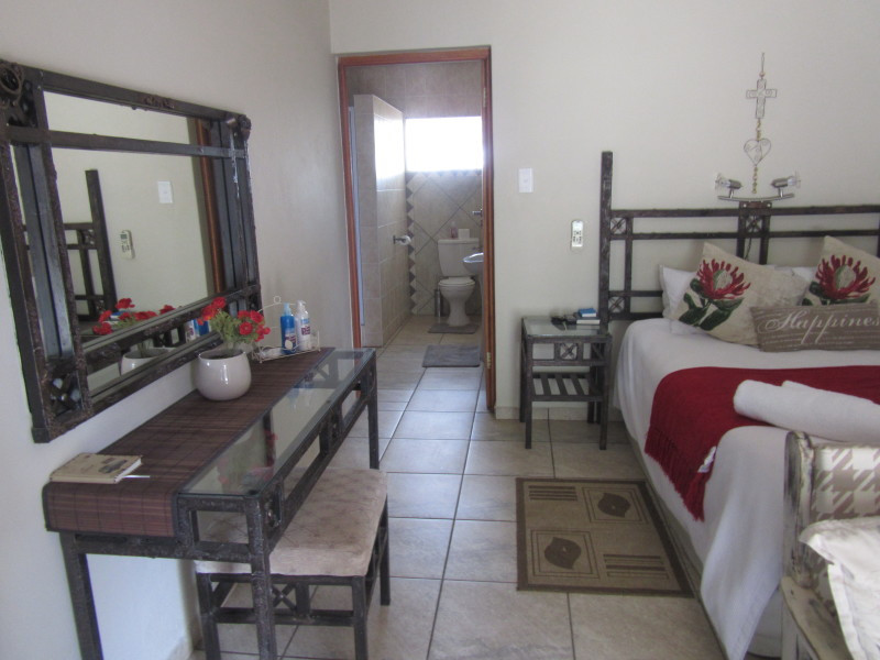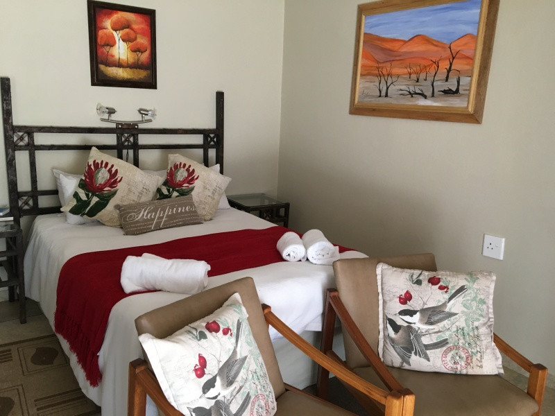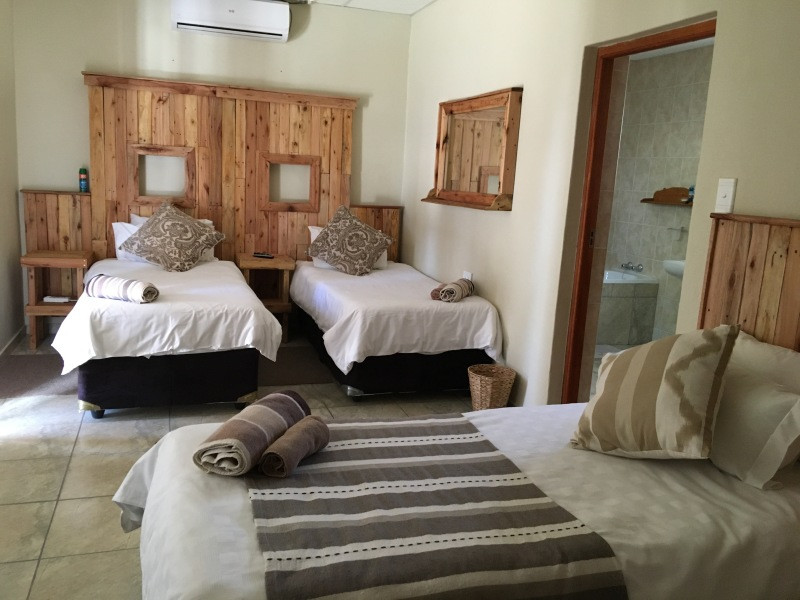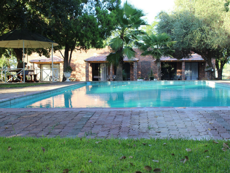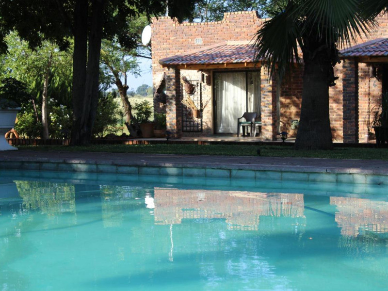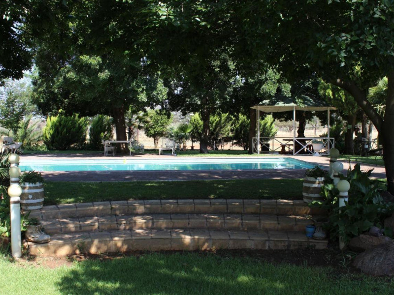 We are 4 km outside the town right next to the N14. The guesthouse has a peaceful relaxed farm atmosphere with a lovely garden and a big swimming pool. There are eight rooms. Each room has a queen bed with an ensuite bathroom, DSTV, coffee station, aircon and a beautiful view with its own entrance. We serve breakfast and dinner on request.