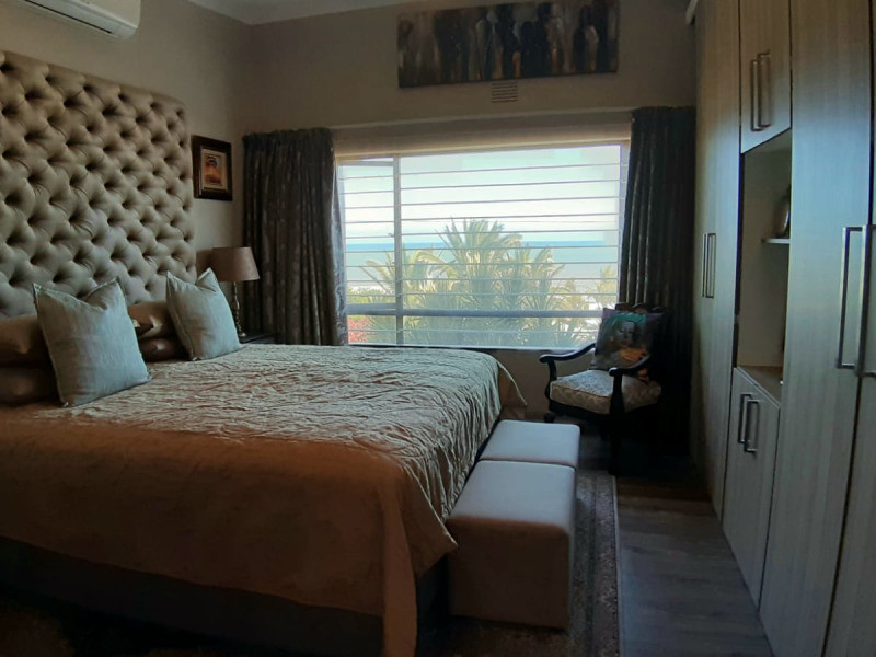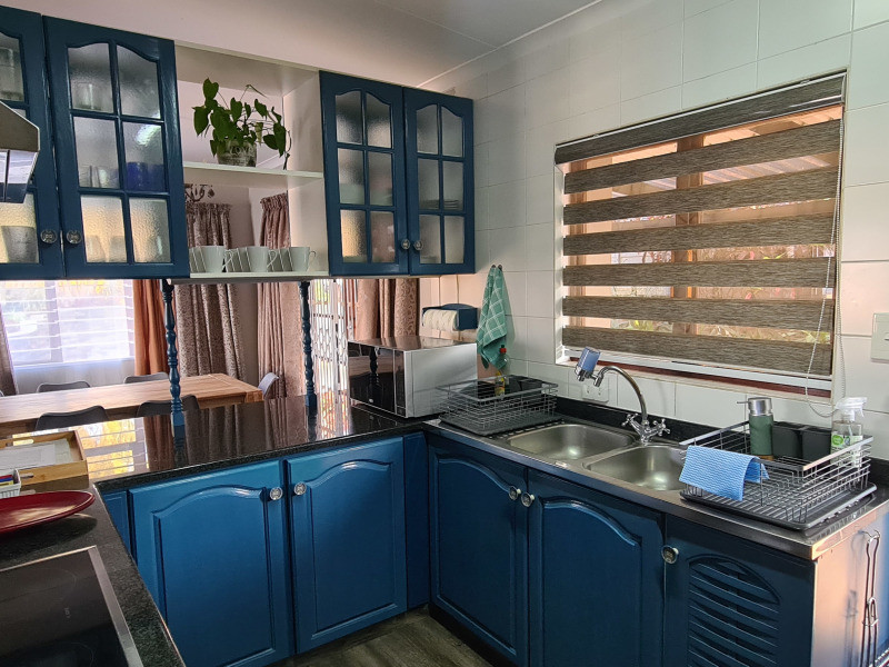 The holiday house can sleep 8 people and is within walking distance (one block) of the very popular Lilliecrona Boulevard and the sought-after but less busy Lucien Swimming Beach. The lounge has a TV with access to DSTV and WIFI is available in the house. The main bedroom is en-suite. All 4 bedrooms have ceiling fans and built-in cupboards. The large front entertainment patio includes a gas braai and an outside dining table to enjoy a braai with your family and friends. The premises have ample parking, including a double garage and open-air parking. The property is neatly rounded off by a well-maintained garden.