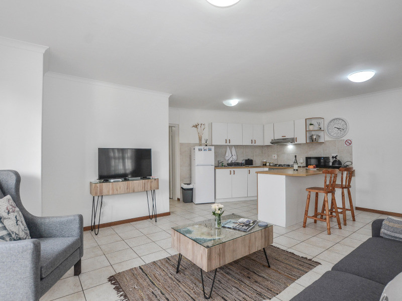 This beautifully furnished spacious apartment is ideally situated and equipped with all the comforts of home. Only 60 min from Cape Town, this is a perfect place for rest and restoration. It is situated a stone’s throw from a 16-mile beach, restaurants, the bakery and other amenities are all within walking distance.